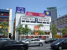 However, internal power struggles persisted. In 1993 Ling's deputy Lee Kim Sai indicated that he would challenge Ling for the presidency, but withdrew at the eleventh hour.[40] Lee eventually retired in 1996 and was replaced as deputy president by Lim Ah Lek.[41] In 1999, the party was again wracked by factionalism. Deputy president Lim Ah Lek announced his intention to retire as a minister and agreed with Ling to nominate his protégé Chan Kong Choy to the Cabinet after the 1999 elections. However, Ling nominated his own protégé Ong Ka Ting as a minister at the expense of Chan, causing discontent with members aligned to Lim, which became known as "Team B" among party members. The Ling faction was known as "Team A".[37][41] Tensions flared further after MCA, through its holding company Huaren, moved to acquire the independent daily Nanyang Siang Pau. This was vehemently opposed by Team B, fearing a complete control of the Chinese media by Team A. They were joined by Chinese journalists and non-governmental organisations, who made their opposition public through demonstrations.[37] The situation turned farcical when chairs were thrown during the 2001 Youth general assembly over the issue.[42] Huaren eventually succeeded in taking over Nanyang Siang Pau. Huaren also controls The Star and China Press,[43] and the domination of media press resulted in strong resentments in the divided party and concerns over press freedom.[44][45][46]