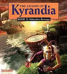 The Legend of Kyrandia: Book Three - Malcolm's Revenge is a 2D point-and-click adventure game, developed by Westwood Studios and published by Virgin Interactive in 1994. It is the sequel to The Legend of Kyrandia: Hand of Fate, and the third and final game in the Fables & Fiends series. The game sees players take on the role of the antagonist from the first game in the series, who begins plotting his revenge against those who thwarted him, only to find himself eventually seeking to prove his innocence of a murder he did not commit.