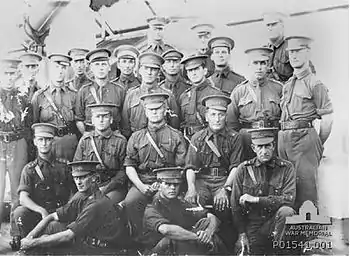 - Although the Australian War Memorial's card reference () claims that Robert Harold Nimmo was a "Major"; no doubt due to the single "thing" on his shoulder, which was, obviously, thought to be a "crown", rather than what it must have been: a "bath star" or "pip" (see British Army officer rank insignia). Nimmo's service record (, page 27) clearly shows that he was a (two "pip") Lieutenant at the time of the photograph. Perhaps Nimmo had borrowed a shirt from a (one "pip") Second Lieutenant for the photograph.