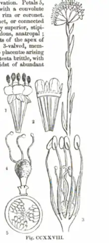 | Figure of M. fasciculata in J. Lindley's book The Vegetable Kingdom. Page 335, figure CCXXVIII. Published 1853. | |