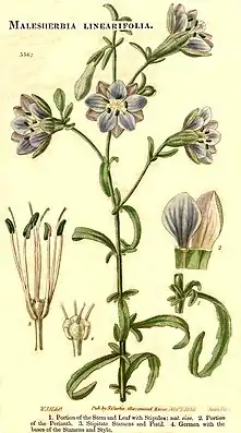 Illustration of M. linearifolia obtained from Curtis's botanical magazine (1834)