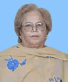 Malik Mehrun Nisa Afridi (Urdu: ملک مہرالنساءآفریدی; Pashto: مالك مَہرُالنساءاپريدي; born April 7, 1943 – March 4, 2013) was a Pakistani Lawyer and a Politician.[1] She was twice member of the Lower house of Parliament. She was elected on Reserved Seats for Women in the 8th National Assembly[2] from 1988 to 1990 and again in the 13th National Assembly[3] from 2008 to 2013. She joined Pakistan Peoples Party on April 24, 1968, as a Student Leader and stayed loyal to her party till her death on March 4, 2013. She was a successful Lawyer well respected by her peers. She was a member of the Central Executive Committee of the Pakistan Peoples Party.[4][5][6]