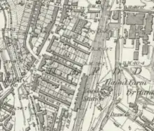 Swansea (High Street) railway station was built in 1850 for the South Wales Railway, which was absorbed into the Great Western Railway in 1863.[2] Sidings were constructed north of the station on the east side of the main line railway out of High Street station, opposite a goods station on the west side; Maliphant Street passed beneath the main line of the railway north of the goods station.[3]