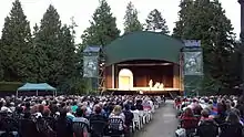 The Malkin Bowl was built in 1934 to replace a more traditional bandstand which had stood at the same location since 1911.[6] The Bowl was designed as a two-thirds-size replica of the Hollywood Bowl. Allard de Ridder, then conductor of the Vancouver Symphony Orchestra, was largely responsible, along with John Vanderpant,[7] for convincing W.H. Malkin, a former mayor of Vancouver, to build the theatre as a summer concert venue for the orchestra.[8][9] Malkin endowed the theatre in memory of his wife, Marion.[10]