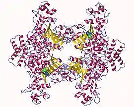 ![]() Malonyl-CoA decarboxylase (mitochondrial, peroxisomal isoform) homotetramer, Human | |||||||