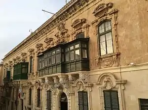 Maltese Baroque architecture is the form of Baroque architecture that developed in Malta during the 17th and 18th centuries, when the islands were under the rule of the Order of St. John.[1] The Baroque style was introduced in Malta in the early 17th century, possibly by the Bolognese engineer Bontadino de Bontadini during the construction of the Wignacourt Aqueduct. The style became popular in the mid to late 17th century, and it reached its peak during the 18th century, when monumental Baroque structures such as Auberge de Castille were constructed.