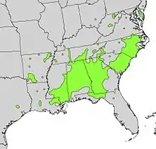 The species can be found from Florida west to eastern Texas and north to New Jersey, Pennsylvania, Illinois and Missouri.[6]