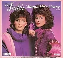 "Mama He's Crazy" is a song written by Kenny O'Dell, and originally recorded by American country music duo The Judds. It was released in April 1984 as the second single from their debut January 1984 EP Wynonna & Naomi. The song was re-released on their full-length 1984 debut album Why Not Me. The song was their second hit and the first of 14 number one singles. The single went to number one for one week and spent a total of 14 weeks on the country chart.[1] It was only the second country number one sung by a female duo; previously only The Davis Sisters featuring Skeeter Davis had made it to number one on the country chart in 1953 with their song "I Forgot More Than You'll Ever Know".[2]