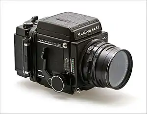 The Mamiya RB67 is a professional medium format single-lens reflex system camera manufactured by Mamiya.[1][2] There are three successive models: the RB67 Professional (released in 1970), RB67 Pro-S (released in 1974) and RB67 Pro-SD (released in 1990). It is primarily designed for studio use, but can also be used in the field.