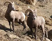 - Bighorn sheep, Ovis canadensis, cliffs, rocky areas, tundra, common