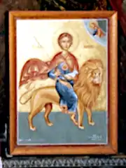 In Cyprus, Mammes is popularly known as a poor hermit who lived in a cave near the town of Morphou. According to local legend, he lived in very poor circumstances, and when the authorities tried to tax him, he evaded them. Soldiers were sent out and they captured him, but on the way back to town, Mammes saw a lion attacking a lamb, escaped the soldiers, saved the lamb, jumped on the lion's back, and rode it into town. His bravery earned him exemption from taxation.[5]