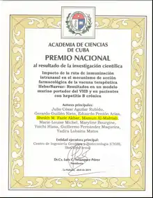 {{cite journal}}: CS1 maint: multiple names: authors list (link) - ‘Premio Nacional’ from Cuban Academy of Sciences in 2019