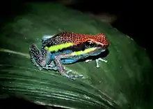 The Manú poison frog (Ameerega macero) is a frog species in the family Dendrobatidae[2][3] found in southern Peru[3] and Brazil.[1] It can be found in the drainages of the Manú, Urubamba, Upper Purus and Ucayali Rivers. It can also be found in Serra do Divisor National Park and Alto Juruá Extractive Reserve.