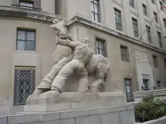 Man Controlling Trade is the name given to two monumental equestrian statues created by Michael Lantz for the Federal Trade Commission Building in Washington, D.C. under the United States Department of the Treasury Section of Painting and Sculpture. The works were dedicated in 1942. Each of the two limestone groups is approximately 12 feet tall and 16 feet long.[1]