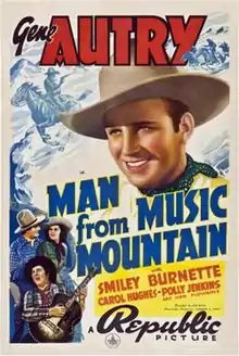 Man from Music Mountain is a 1938 American Western film directed by Joseph Kane and starring Gene Autry, Smiley Burnette, and Carol Hughes. Written by Betty Burbridge and Luci Ward, based on a story by Bernard McConville, the film is about a singing cowboy who fights corrupt land developers who try to cheat honest ranchers who are unaware of the gold lying beneath their land.[2]