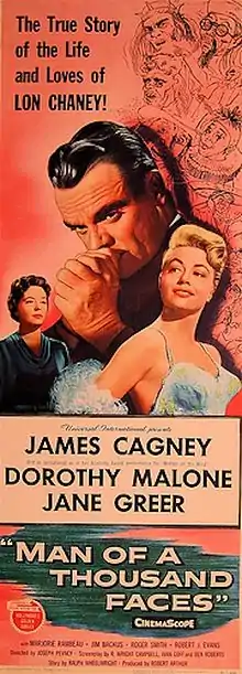 Man of a Thousand Faces is a 1957 dark drama film detailing the life of silent movie actor Lon Chaney, in which the title role is played by James Cagney.