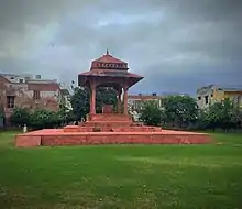 In 1921, a chhatri was constructed marking the site of her tomb using a design made in the Archeological Superintendent Office. The Chhatri is built exactly on the site of the original crypt chamber. The construction of the Chhatri was funded by the Maharajadhiraja of Burdwan and cost about Rs 200(in 1921). The Chhatri is known as 'Chhatri making the site of the Empress Jodhbai's Tomb' or simply 'Jodhbai Ki Chhatri'.[66][67]