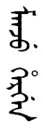 | ᡮ᠊ | ᠊ᡮ᠊ | ts'/c/ts῾/c [tsʰ] | 186E | Used in Chinese c [t͡sʰ]. | |||