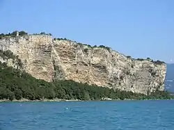 The Valtenesi saw the construction of several castles starting from the 13th century AD, some of which erected on the ruins of Roman forts. The tower of the castle in the center of Manerba represents the convergence point of a radial pattern that connects the towers of all the municipalities around. This is the oldest castle in the Valtenesi, built in the 12th/13th centuries on the ruins of a medieval fortress and of a settlement dating to the Iron Age, and is firmly anchored on the Manerba cliffs hanging over the southern basin of Lake Garda.[3]