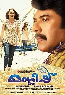 Manglish is a 2014 Indian Malayalam-language action comedy film directed by Salam Bappu, and the features Mammootty and Dutch actress Caroline Bech in the lead.[1] [2] The film is produced by Haneef Muhammed under the banner of Red Rose Creations. Manglish is the first Malayalam film to be released in Dolby Atmos.[3] The film is released on 25 July 2014 during the occasion of Eid-ul Fitr.[4]Later the film was dubbed into Telugu as Malik Bhai.[5]