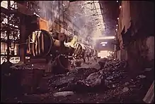 The refinement of the alloy in the converter is possible because the combustion of undesirable elements is strongly exothermic: the oxidation of silicon and carbon respectively produce 32.8 and 10.3 kilojoules per kilogram.[3] On the other hand, if a copper matte contains an abundance of iron and sulfur, these elements must first be separated (which consumes 6.8 kilojoules per kilogram of FeS) before their oxidation (which only produces 5.9 and 9.1 kJ/kg respectively) can begin.[4][5]