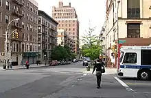 There are two historic districts on this avenue. Manhattan Avenue between West 120th and 123rd Streets was designated a National Historic District in 1992.[2][3] The Manhattan Avenue–West 120th–123rd Streets Historic District[4] lies on the western edge of Central Harlem. It is composed of 113 contributing brownstone and brick row houses on four short blocks between 120th and 123rd streets bounded by Morningside and Manhattan Avenues.[5] Additionally, a Manhattan Avenue Historic District between West 105th & West 106th Streets, including 101-137 and 120-140 Manhattan Avenue was designated by the New York City Landmarks Preservation Commission on May 15, 2007.[6]