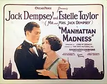Manhattan Madness is a 1925 American silent drama film directed by John McDermott and starring Jack Dempsey and Estelle Taylor, a then real life husband and wife duo. It was produced by Fine Arts Pictures and distributed through Associated Exhibitors. This film is a remake of Douglas Fairbanks's 1916 film Manhattan Madness.[1][2]