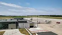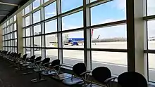 The current airline terminal opened in two phases between 2015 and 2016, replacing the 1997 terminal. The $18 million project has three jet bridge parking positions from two gates, and can accommodate aircraft as large as the Boeing 737 or Airbus A320. The new terminal has more space for ticketing, baggage claim, car rental, and security screening. There is space for a restaurant, but as of August 2017 a tenant has not been found.