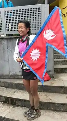 Rai in 2015, at Zegama, Spain, with the Nepalese flag