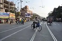 The construction of Vivekananda Road, by Calcutta Improvement Trust, was completed in 1928. It was a broad new road through a congested area and changed the complexion of the area. Many buses and auto-rickshaws ply along these roads.[14]