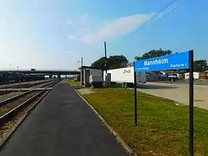 Mannheim is a station on Metra's Milwaukee District West Line in Franklin Park, Illinois that gets services during rush hour as a flag stop. The station is 14.0 miles (22.5 km) away from Chicago Union Station, the eastern terminus of the line.[2] In Metra's zone-based fare system, Mannheim is in zone C. As of 2018, Mannheim is the 218th busiest of Metra's 236 non-downtown stations, with an average of 35 weekday boardings.[1] The reason this station is named because of Mannheim Road running right next to it. It is the only non-ADA-accessible station on the Milwaukee District West Line. The Tri-State Tollway also runs adjacent to the Mannheim station.