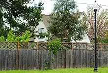 Located along northwest Evergreen Road at Jackson School Road, the Manning-Kamna farm sits across the street from the city of Hillsboro. The largest and oldest building on the farm is the residence. Built as early as 1876 and as late as 1883, the house stands 1.5 stories tall and is of a late Victorian style in a cruciform shape.[1] The cross-wing Western Farmhouse designed structure has a gabled roof (double Gabled-Ells) with four hip-roofed porches, one on each corner.[5] The home is a wood-framed building that had a concrete foundation added in 2006.[5] Materials include mainly Douglas-fir for the wood, and a composite shingle roof.[5]
