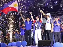 On October 1, he formally registered his candidacy under the Cebu-based party PROMDI.[6][7] This was in accordance with the "MP3 Alliance" established by PDP-Laban under Pacquiao's faction with PROMDI, and the People's Champ Movement.[8] Cusi's faction in response to Pacquiao's filing of his candidacy under PROMDI decided that he is no longer a member of PDP-Laban.[9]