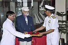 Vice Admiral Manohar Prahlad Awati, PVSM, VrC (7 September 1927 – 4 November 2018) was a Flag Officer in the Indian Navy. He last served as the Flag Officer Commanding-in-Chief (FOC-in-C) Western Naval Command. During the Indo-Pakistani War of 1971, he was awarded the Vir Chakra for his command of the Arnala-class anti-submarine corvette INS Kamorta (P77).[2][4] The admiral was also known as the "Father of the Indian Navy's Circumnavigation Adventures".[5][6][7]