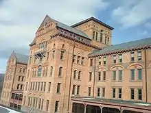 North Hall, a four-story Victorian structure, was completed in 1878. The current visible North Hall was actually built in two parts. The original North Hall from 1874 was torn down in the spring of 1907. The north part (left side) and the middle section was started in the summer 1891 immediately following the purchase of the lot that the North end cross wing sits on. This new structure was seven stories tall. The new cafeteria on the first floor was opened for use on Thanksgiving Day 1892. Until 1907 the original North Hall minus the northernmost cross wing part was up against the newer middle section (south side) and was only 4 stories tall. In mid 1907 the matching South end of the current North Hall was started. This was completed in 1909. For years, the upper floors served as a women's dormitory while the ground floor was used as the cafeteria. As the university grew and other buildings on the campus were built, North Hall severely deteriorated.