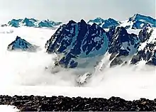 During the Pleistocene period dating back over two million years ago, glaciation advancing and retreating repeatedly scoured the landscape leaving deposits of rock debris.[4] The "U"-shaped cross section of the river valleys are a result of recent glaciation. Uplift and faulting in combination with glaciation have been the dominant processes which have created the tall peaks and deep valleys of the North Cascades area.