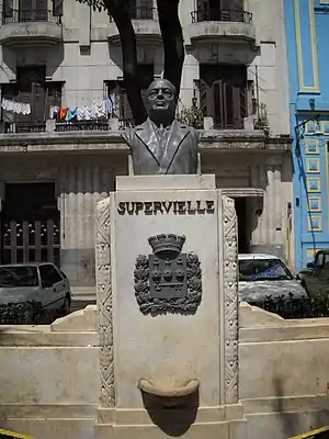 He was a member of the Cuban House of Representatives as member of the Partido Demócrata Republicano. He later left the party and joined the Partido Revolucionario Cubano (Auténtico). Supervielle was the Secretary of the Treasury of Cuba during the government of Ramón Grau San Martín (1944–1946).[1] He later became the Mayor of Havana in September 1946. He had promised to build a new aqueduct for the city, but was unable to fulfill his promise. So on May 5, 1947, he shot himself in the chest with a revolver and died.[2] The U.S. Embassy in Havana reported: "Great weight public opinion, as openly expressed, blames Grau and administration for death, holding that honest honorable official was hampered in fulfillment waterworks campaign promises by venality of politicians and preferred death to dishonor." He was succeeded by the President of the Havana City Council, Nicolás Castellanos.
