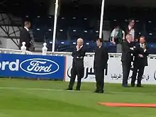 Trapattoni began coaching at Milan as a youth team coach, before becoming caretaker coach. Trapattoni was caretaker coach from 9 April 1974 to 30 June 1974.[15] His first match was the 1973–74 European Cup Winners' Cup semi–final first leg against Borussia Mönchengladbach.[16] Milan won the match 2–0.[16] They got to the final after only losing the second leg 1–0.[16] Milan lost the final 2–0 to East German club 1. FC Magdeburg.[16] Milan finished seventh in Serie A.[17] He was appointed first team coach in 1975.