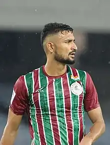 On 25 August 2020, it was announced that ATK Mohun Bagan had secured Manvir Singh under a three-year contract.[28] After negotiating a transfer fee with FC Goa, it was declared by the Gaurs as their biggest transfer fee received by the club for a player till the date.[29] His transfer fee closed by ATK Mohun Bagan is the third highest fee paid for an Indian player by any club in the history of Indian football.[30] He made his debut for the club in the opening match of the 2020–21 Indian Super League season against Kerala Blasters on 20 November 2020, which ended 0–1 to ATK Mohun Bagan.[31] He scored his debut goal for the club against fierce rivals SC East Bengal on 27 November, which they won 0–2 at full-time.[32] Manvir found the net again on 11 December in the match against Hyderabad, which concluded in a 1–1 draw.[33] He scored a brace against Odisha FC on 6 February 2021, where he opened the score-sheet, and also found the net when the match was in the event of deadlock, that resulted in a 1–4 victory for ATKMB.[34] Manvir scored his fifth goal of the season on 22 February against Hyderabad in the second match against them that season, which ended in a 2–2 draw, after he restored the draw in the beginning.[35] After ATK Mohun Bagan qualified for the playoffs and met NorthEast United in both legs, Manvir scored in the second leg against them on 9 March, which ended 2–1 to ATK Mohun Bagan.[36] His goal was a vital goal that helped ATKMB to progress through to the final of the 2020–21 ISL season,[37] after an aggregate win of 3–2 from both legs.[38] Manvir started in the final against Mumbai City FC on 13 March 2021,[39] which they lost 2–1 after Mumbai City found their all important goal in the last minute of the match.[40]