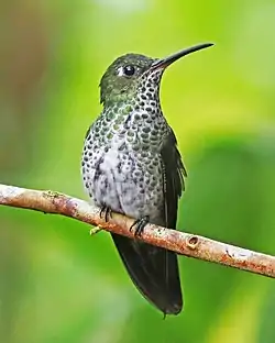 The many-spotted hummingbird (Taphrospilus hypostictus) is a species of hummingbird in the "emeralds", tribe Trochilini of subfamily Trochilinae.[4][5] It is found in Bolivia, Colombia, Ecuador, Peru, and possibly Argentina.[6]