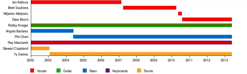 - Ray Manzarek – keyboards, vocals (2002–2013; died 2013)