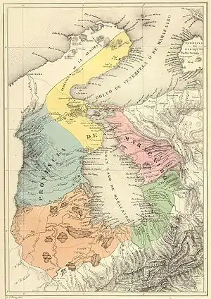 Maracaibo Province was a province of Venezuela from 1830 to 1864. Before 1830 the area was named Zulia Department. In 1864 the area was named Maracaibo State, which shortly after was renamed to Sovereign State of Zulia and in 1874 Zulia State.