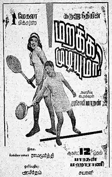 Marakka Mudiyuma? (transl. Can I Forget?) is a 1966 Indian Tamil-language drama film produced and directed by Murasoli Maran, and written by his uncle M. Karunanidhi. A remake of the Telugu film Santhanam (1955), it stars S. S. Rajendran, Devika, R. Muthuraman and Kanchana, with Cho, S. V. Sahasranamam Major Sundarrajan and S. A. Natarajan in supporting roles. The film was released on 12 August 1966.[1]
