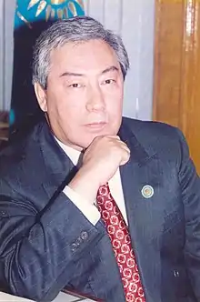 Marat Turdybekuly Ospanov (Kazakh: Марат Тұрдыбекұлы Оспанов, Marat Tūrdybekūly Ospanov) (17 September 1949 – 23 January 2000) was a Kazakh politician, 1st Chairman of Mazhilis from 1996 to 1999, member of the Supreme Council from 1990 to 1993, Deputy Chairman of the Supreme Council from 1994 to 1995, and a Deputy Minister of Finance from 1992 to 1994.[1] He was an author of an economic program “From Stabilization to Us”. Took part in the development of the first Tax Code of Kazakhstan, and in the Declaration of Independence of Kazakhstan.[2] Ospanov was awarded the Order "Barys" II degree. He died on 23 January 2000 in Almaty.[3]