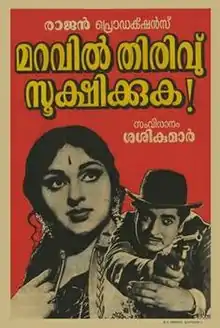 Maravil Thirivu Sookshikkuka is a 1972 Indian Malayalam-language crime thriller film, directed by J. Sasikumar and produced by R. S. Rajan. The film stars Prem Nazir, Vijayasree, Adoor Bhasi and Thikkurissy Sukumaran Nair. The film had musical score by G. Devarajan.[1][2][3]
