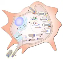 Niemann–Pick C1 (NPC1) cholesterol transporter protein appears to be essential for infection with both Ebola and Marburg virus. Two independent studies reported in the same issue of Nature showed that Ebola virus cell entry and replication requires NPC1.[21][22] When cells from patients lacking NPC1 were exposed to Ebola virus in the laboratory, the cells survived and appeared immune to the virus, further indicating that Ebola relies on NPC1 to enter cells. This might imply that genetic mutations in the NPC1 gene in humans could make some people resistant to one of the deadliest known viruses affecting humans. The same studies described similar results with Marburg virus, showing that it also needs NPC1 to enter cells.[21][22] Furthermore, NPC1 was shown to be critical to filovirus entry because it mediates infection by binding directly to the viral envelope glycoprotein[22] and that the second lysosomal domain of NPC1 mediates this binding.[23]