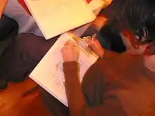![]() Artist at work; A photo of Marc Bell taken at the Monthly Montreal Comix Jam, February 25, 2004 | |