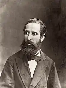 Marc Ferrez was the son of the French sculptor and engraver Zepherin Ferrez who moved to Rio de Janeiro in 1816. Marc Ferrez was born in Rio de Janeiro, Brazil. He studied in Paris then came back to Rio as an apprentice to photographer Franz Keller of Germany. In 1865, Ferrez opened his own photography studio where he primarily focused of landscapes and Brazilian nature. His work became so popular that Emperor Dom Pedro II gave him funds to support his art, allowing Ferrez to explore every angle that the camera had to offer.[1] Just eight years after its opening, in 1873, his studio burned down. He returned to France to purchase a new camera, opting for one that had the capability of taking panoramic photos. This was a view of photography that was still in its infancy. When he finally returned to Rio de Janeiro, he focused on rural landscapes and slaves working on the plantations.[2] From 1875 to 1876 Ferrez joined American Charles Frederick Hartt on a geological and geographic expedition to the inner province of Bahia. It was during this trip Ferrez took pictures of indigenous Botocudo tribe, and used the panorama and became the master of it.[3]
