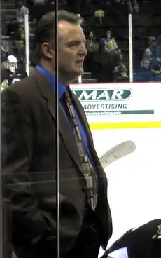 Habscheid got his start in coaching in the Saskatchewan Junior Hockey League with the Melfort Mustangs. He then moved on to coach the Kamloops Blazers of the WHL. On November 29, 1999, he was named head coach of the Kelowna Rockets. Habscheid achieved great success with the Rockets. He won the Ed Chynoweth Cup in 2003 and a Memorial Cup in 2004. He was also named the CHL Coach of the Year in 2003. Habscheid was also head coach of the 2003 Canadian World Junior team, becoming the first player to represent Canada at the tournament as both a player and coach. He was subsequently named head coach for all international tournaments on July 29, 2005. He won a gold medal at the World Championships in 2004 and silver in 2005. As well, Habscheid served as an assistant coach for Canada at the 2006 Turin Olympics. Habscheid also spent one season as an associate coach with the Boston Bruins. On June 3, 2009, Habschied was named as head coach and general manager of the Chilliwack Bruins, a major junior team in the Western Hockey League which has since moved to Victoria, British Columbia to become the Royals. On November 4, 2014, Habscheid returned to the WHL coaching ranks when he accepted the Prince Albert Raiders head coaching position.[2]