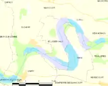 Near Éclusier, the Somme River forms a lake surrounded by bogs and marshy footpaths that were difficult for soldiers to follow[4] so Semmer took on the task of guiding troops as they maneuvered through the wetlands.[5] While escorting a squad of French soldiers to an advanced position, they were all captured by German troops near the village of Frise. The commander there (some sources[5] say it was the same man as before) locked Semmer in the village church. She was certain that the firing squad would be called the following day, but again the French artillery saved her by shelling the village and opening a large hole in one wall of her enclosure. According to Hart, "Creeping past the Germans scattered through Frise, she soon tumbled safe and sound into the nearest French trench."[2]